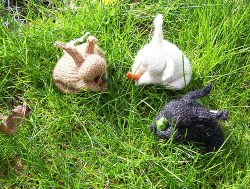 These are my naughty bunnies, hand knit, soft and cuddly just right for tucking into an Easter basket for all ages. You choose the color any color (not limited to what you see here) and I will even include a tiny carrot or mini head of lettuce.